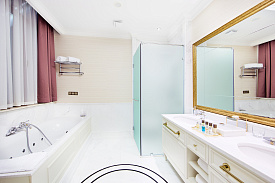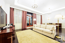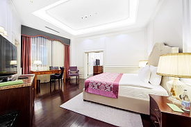 Двухкомнатный просторный номер площадью 120 кв. метров включает спальню с кроватью размера «king size» и отдельную вместительную гостиную. Из окон и террасы открывается великолепный вид на горы. Номер оснащен удобствами согласно высоких стандартов: открытая терраса, светонепроницаемые шторы, отдельная гостиная, рабочая зона, ванная комната с джакузи и душевой кабиной, гостевой туалет, обеденный стол, бесплатный Wi-Fi, кофе-машина, мини-бар, док-станция для устройств Apple, LCD телевизор в каждой из комнат, сейф.
